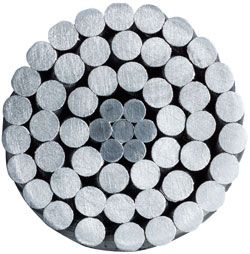 Наружный слой этих самонесущих изолированных проводов состоит из лёгкой алюминиевой проволоки с высокой проводимостью и сердечника из особо устойчивой к растяжению оцинкованной стальной проволоки